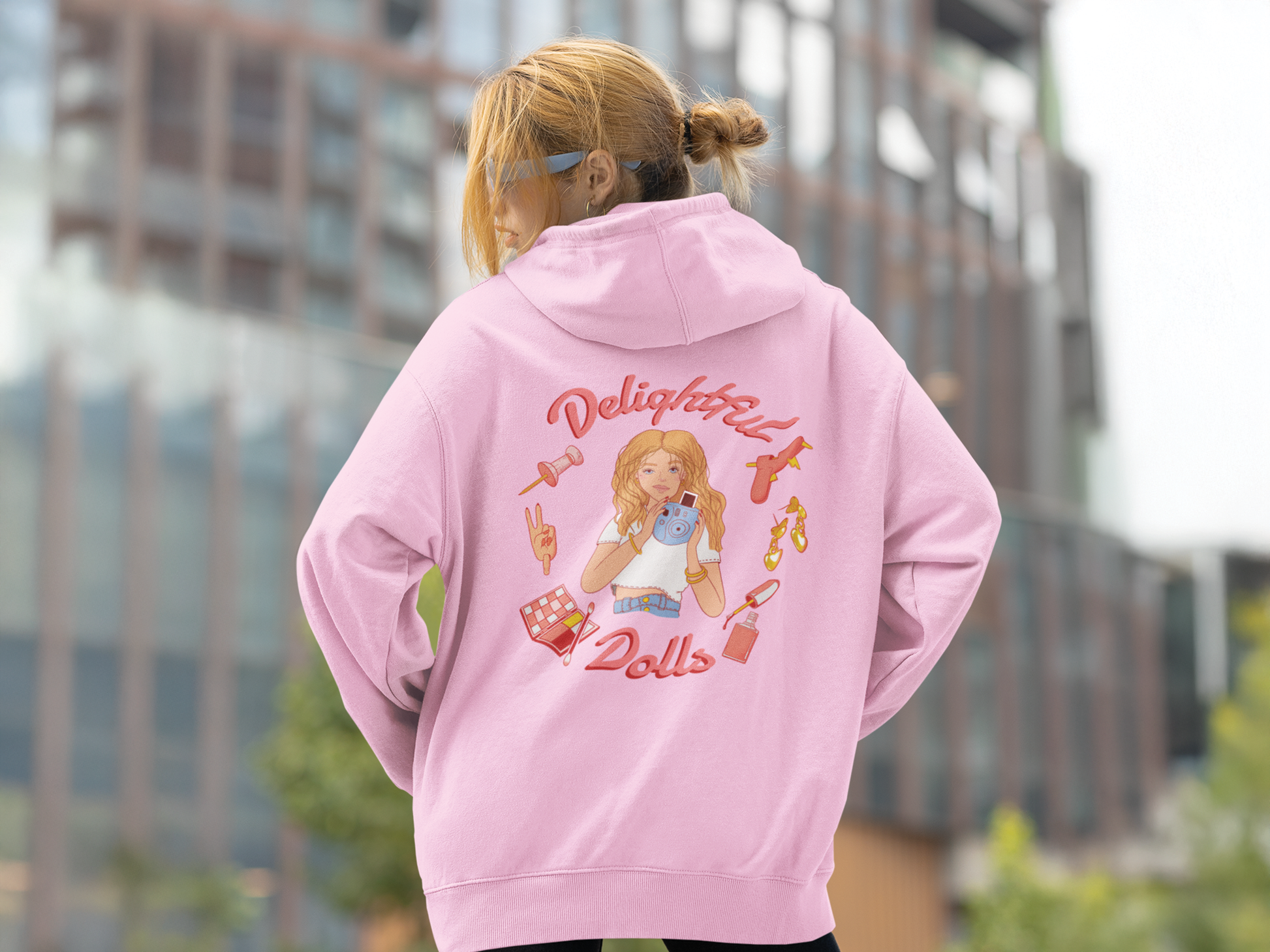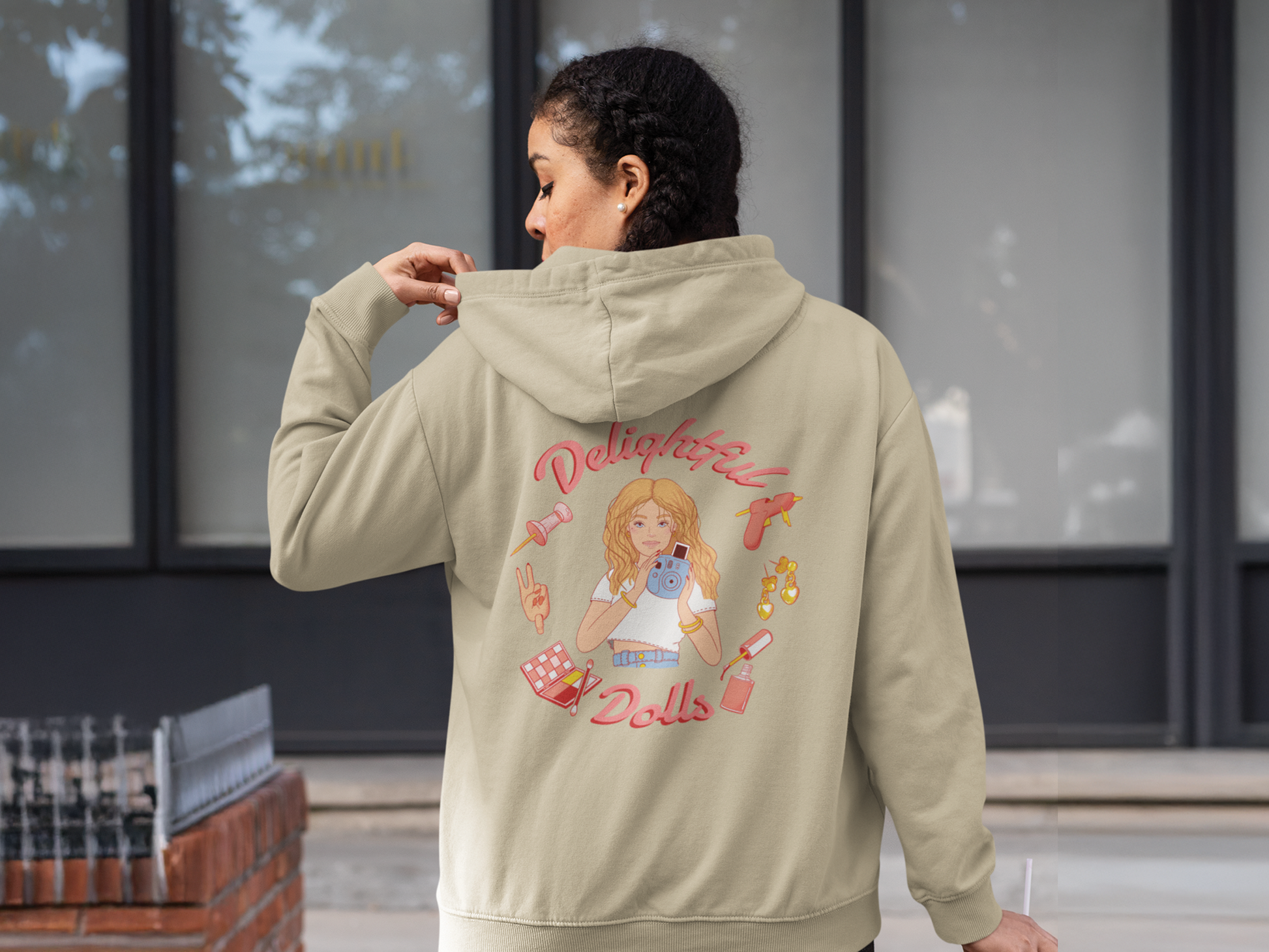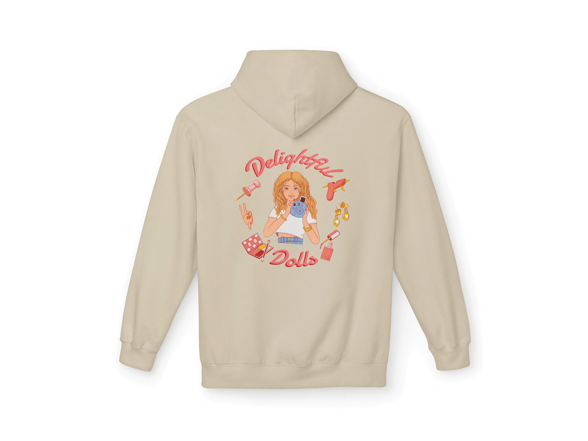 Show the world you’re part of the #DDsquad with this cozy hoodie! Designed in a neutral beige tone, the front features the signature hashtag with fun, doll-inspired graphics, while the back boasts a vibrant illustration of Ava surrounded by creative essentials. This hoodie isn’t just about staying warm—it’s about repping a community of creativity, style, and passion for all things DelightfulDolls.